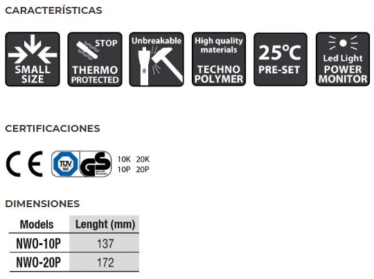 Completamente sumergible, un calentador de acuario automático en miniatura. Equipado con un micro-termostato sensible y preciso, que mantiene la temperatura del agua constante a 25 ° C ± 1 ° C. Fabricado con polímero extra resistente relleno de resina epoxi, completamente irrompible. El elemento calefactor es muy eficiente y compacto con una potencia de 10/20 W. Se suministra con ventosas. Para evitar cualquier daño causado por choque térmico o uso en seco, cada modelo está equipado con un protector hermético especial.