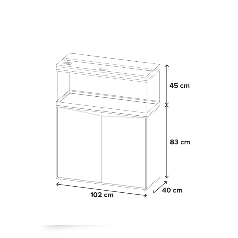 Aquário com perfil de alumínio moderno e estrutura monobloco, sem arestas e com acabamento impecável. A incrível aparência natural das tonalidades sublimadas irá surpreendê-lo, assim como a harmoniosa combinação do aquário com o móvel de design inovador.