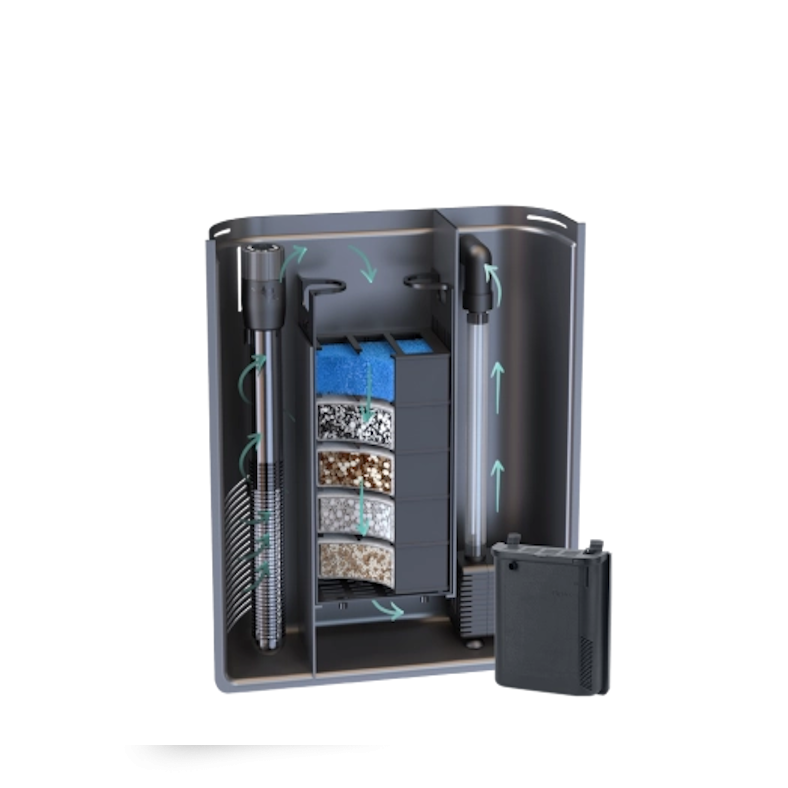 BIOBOX® são sistemas de filtração interiores compactos e muito eficazes, equipados com a filtração modular B-BOX, que efectua uma filtração biológica, química e mecânica, limpando a água em profundidade e retendo as substâncias que podem ser prejudiciais aos peixes e às plantas. Estes filtros estão também equipados com bomba de água EasyFlux e aquecedor EasyKlim.