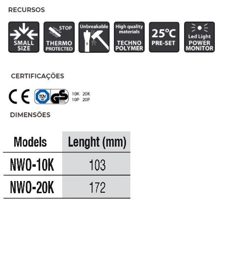 Completamente submersível, um aquecedor de aquário automático em miniatura. Equipado com um micro-termostato sensível e preciso, que mantém a temperatura da água constante em 25 ° C ± 1 ° C. Feito com polímero extra resistente preenchido com resina epóxi, totalmente inquebrável. O elemento de aquecimento é altamente eficiente e compacto com 10/20 W de potência. Fornecido com ventosas. Para evitar qualquer dano causado por choque térmico ou uso a seco cada modelo é equipado com protetor térmico especial.